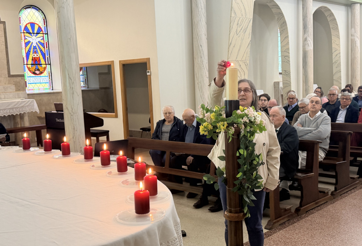 Ao meio-dia, o grupo reuniu-se, na Capela do Seminário, para a Celebração da Eucaristia do Segundo Domingo de Páscoa, presidida pelo P. José Rebelo e concelebrada pelos Missionários Combonianos presentes. No contexto da celebração a mensagem foi eminentemente pascal, sublinhando as dinâmicas do Encontro com o Ressuscitado e a condição de Testemunhas da Ressurreição que somos como seus discípulos e missionários. A Eucaristia foi oferecida por todos os familiares dos combonianos defuntos, particularmente pelos que faleceram no último ano, cujos nomes foram mencionados e recordados com emoção.