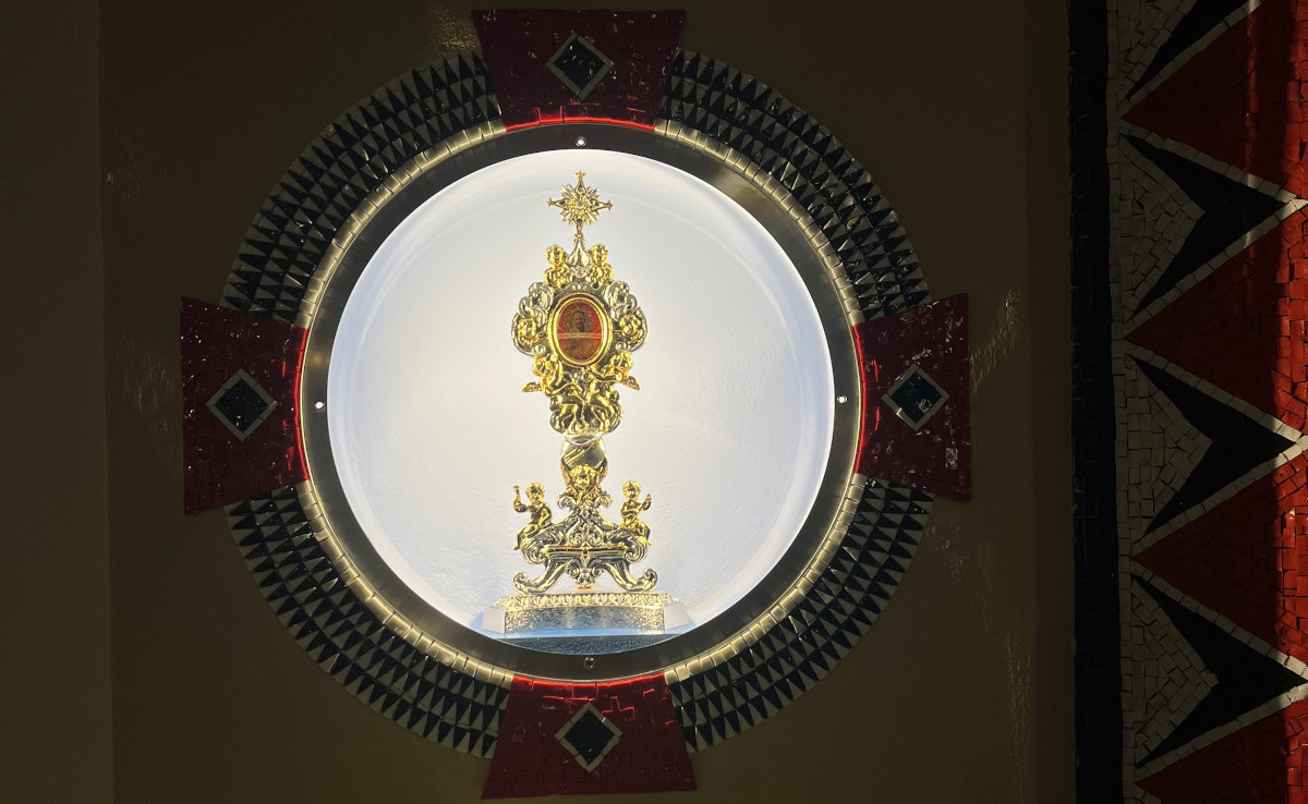 Dopo l'omelia, Padre Deogratias Nguonzi, comboniano ugandese appartenente alla DSP, che proprio quel giorno ha celebrato il suo X anniversario di sacerdozio, ha consegnato al cappellano militare la reliquia ossea del Beato Ambrosoli. Don Stefan l'ha ricevuta e collocata in un cassettino di metallo, che sarà poi depositato sull'altare.