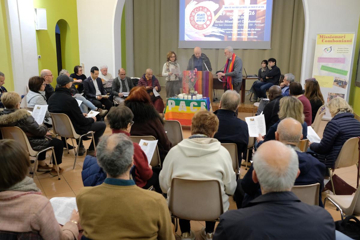 Nella casa dei Missionari comboniani di Padova, è stata organizzata domenica 29 marzo 2026, una serata di preghiera interreligiosa per la pace nel mondo. È stata animata da rappresentanti di varie confessioni religiose con la partecipazione attiva dei Laici missionari comboniani. Attorno al profondo massaggio di verità contenuto nella celebre frase di Gandhi: ‘Non c’è via per la pace, la pace è la via’, si è riunito un gruppo di persone che da alcuni anni fanno un percorso di amicizia, riflessione, preghiera interreligiosa. Sono amici di fede cristiana cattolica, altre confessioni cristiane, fede Bahá'í, fede islamica, buddista.